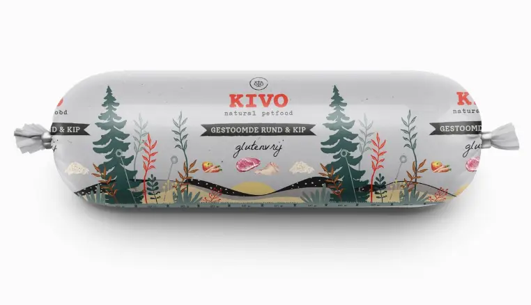 Kirjeldus 57% kana, 21% veiseliha (5% süda, 5% kops, 5% põrn/neer, 3% maks), 15% pruun riis, 3% köögiviljad, 2% puuviljad.